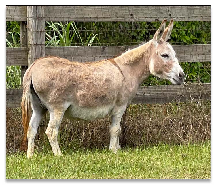 Ollie will be first offered to those on our waiting list after we have his photos and videos posted. He will be castrated and sold as a gelding. He will be up to date on de-worming, hoof trims and vaccinations.  He will be given Prestige 5+ West Nile which also protects against Eastern/Western Enchepalitis, Rhino, Influenza, and Tetanus. He will have his first shot and his booster of the same three weeks later. So he will not need another vaccination until the following year. He will also be given a separate vaccination to protect him from Rabies, as well, He will be microchipped and registered in the Miniature Donkey Registry in Texas. His papers were applied for on September 13th, 2024, so they should be issued before he has been weaned.