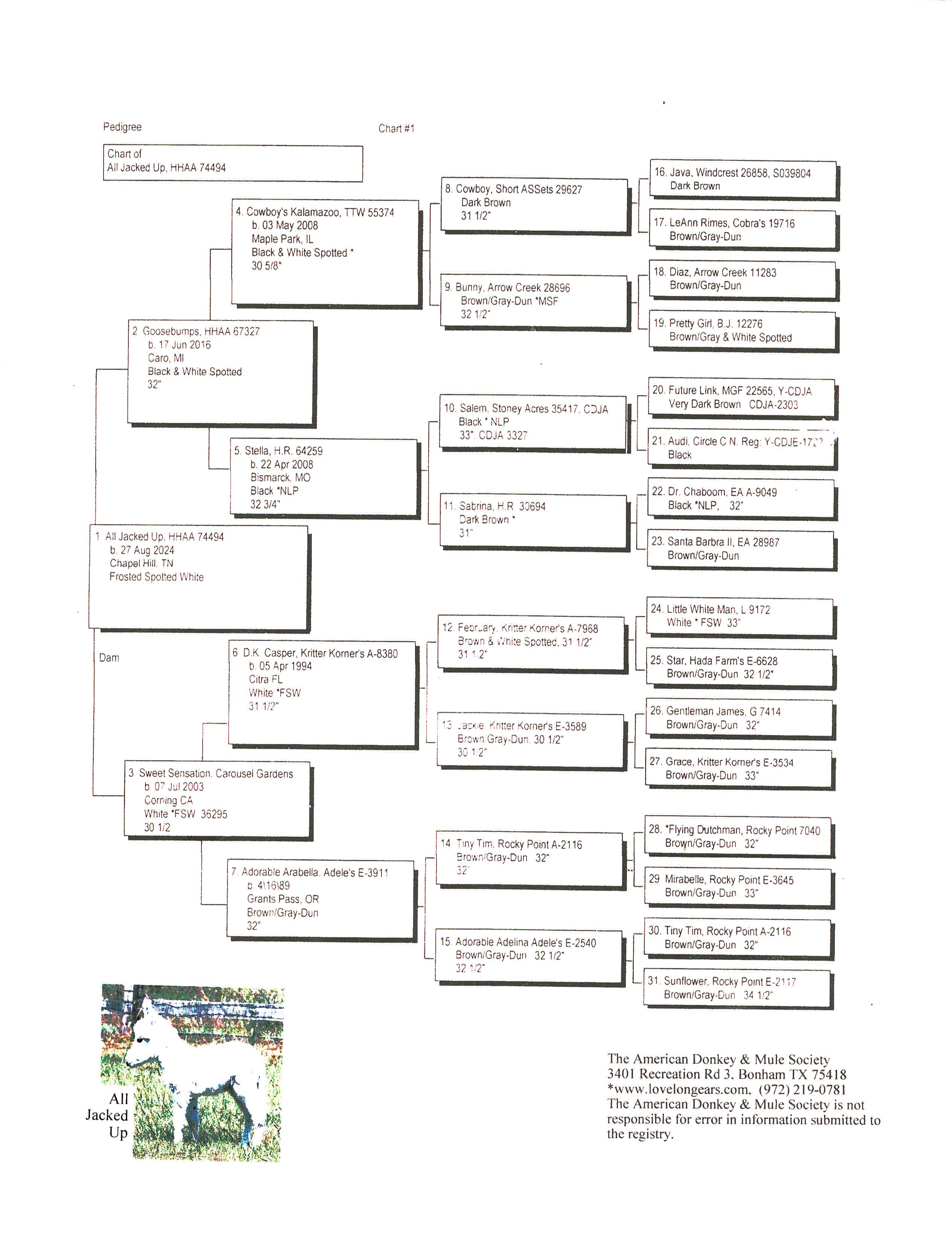 Click MDR sign for Miniature Donkey Registry PedigreeFlower's full pedigree!
